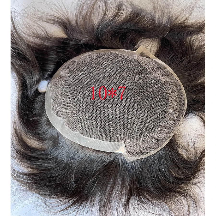 In Stock Toupee for Men European Human Hair Pieces for Men 10X7"Lace and Around PU Hair Replacement System for Men Natural Wavy