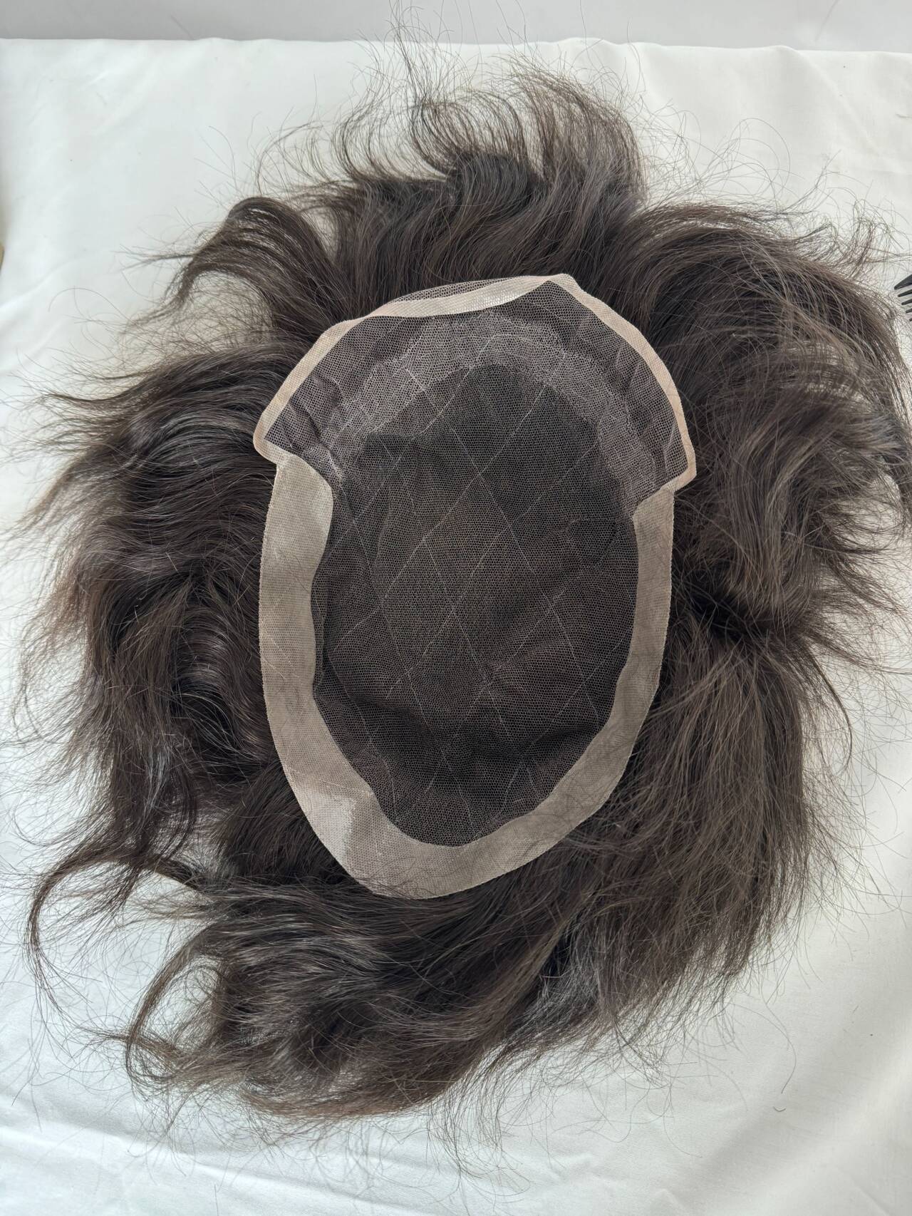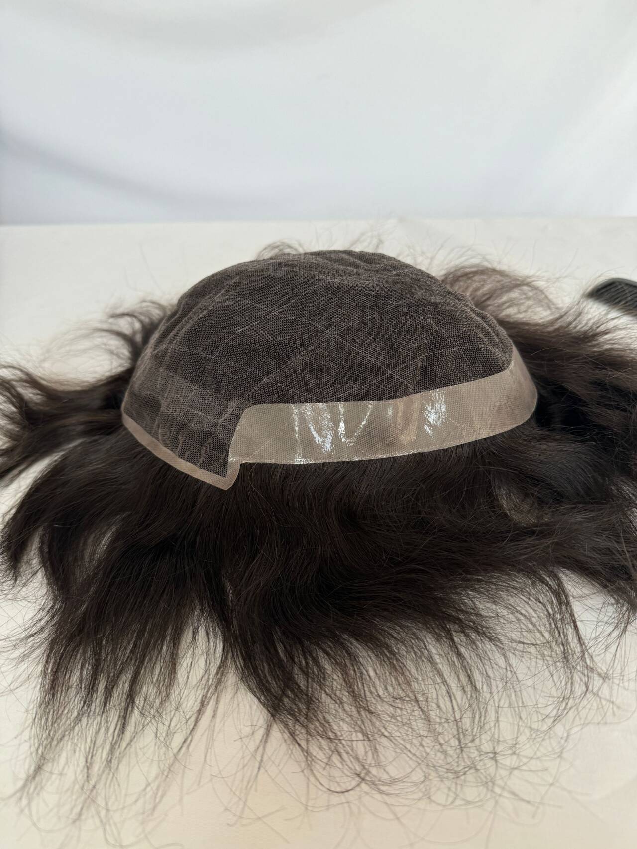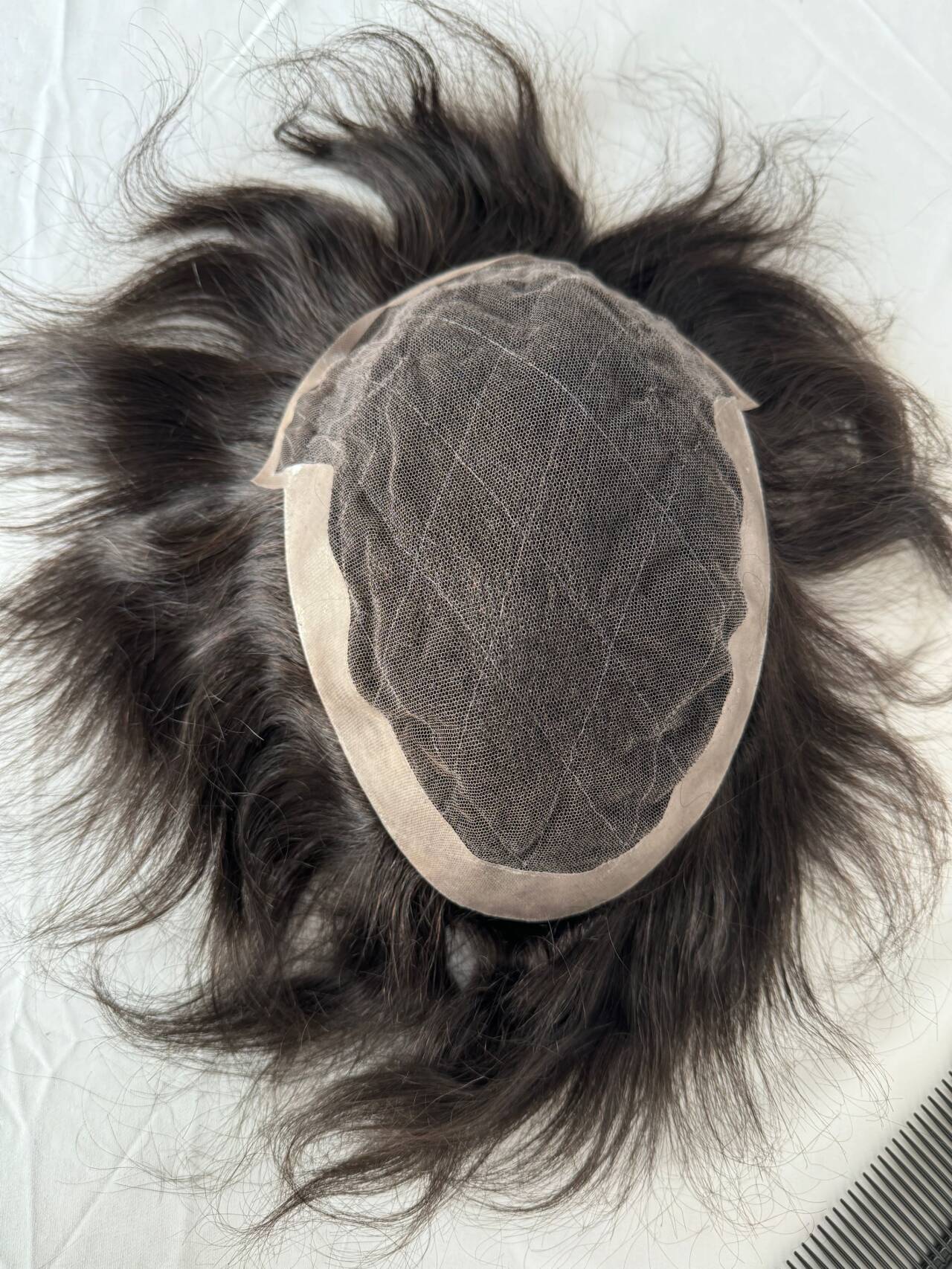 A: 90% to 130% medium light density, which is the most common and natural density for men. If you think it's too thick, you can cut it by yourself or let your hairstylist help you style it.